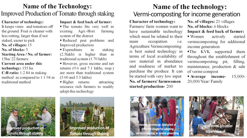 • Adoption of recommended agriculture technologies, viz. selection of variety, seed rate, seed treatment, method & time of sowing, fertilizer management, irrigation requirement, protection against insect pests and diseases resulted in increase production and productivity vis-vis farm income.